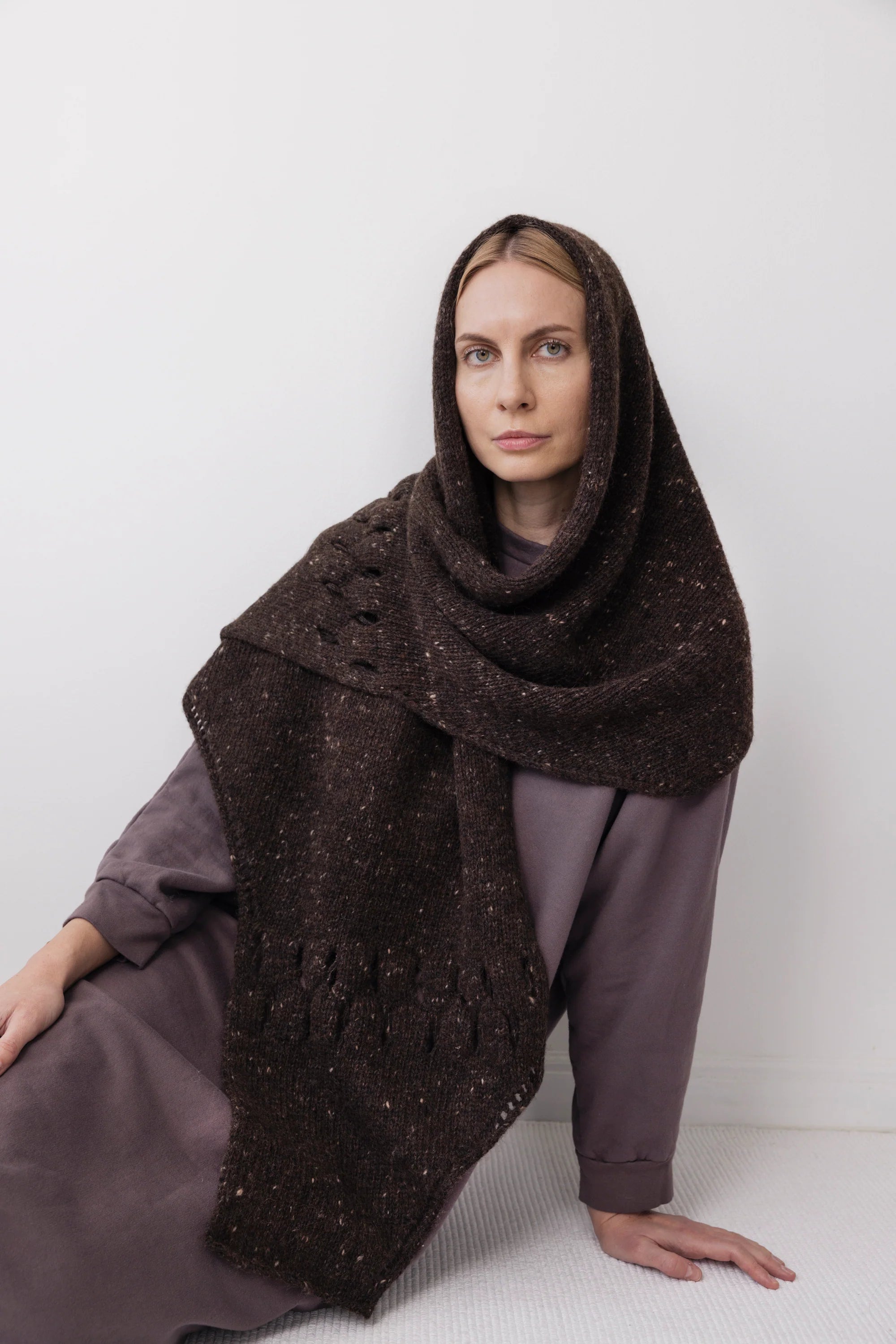 Hooded Scarf : Cocoa Tweed